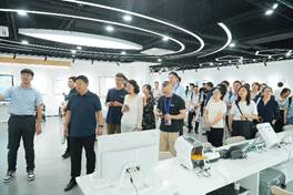 在首站苏州市相城区银发经济产业园的参观中,与会成员通过创新体验馆的沉浸式展示,深入了解了区域银发经济的战略布局与发展路径。在讲解员的引导下,大家现场观摩了外骨骼机器人、智能监护系统、康复训练设备等前沿康复医疗装备,并亲身体验了适老化智能家居的创新应用。与会者表示,这种"可感知、可体验、可互动"的参观方式,更直观感受到智能科技为银发产业带来的变革力量,也切身体会到了学会在银发经济发展中的社会担当,这为学会后续探索"党建+科技+产业"的融合发展路径提供了新的思路与启发。