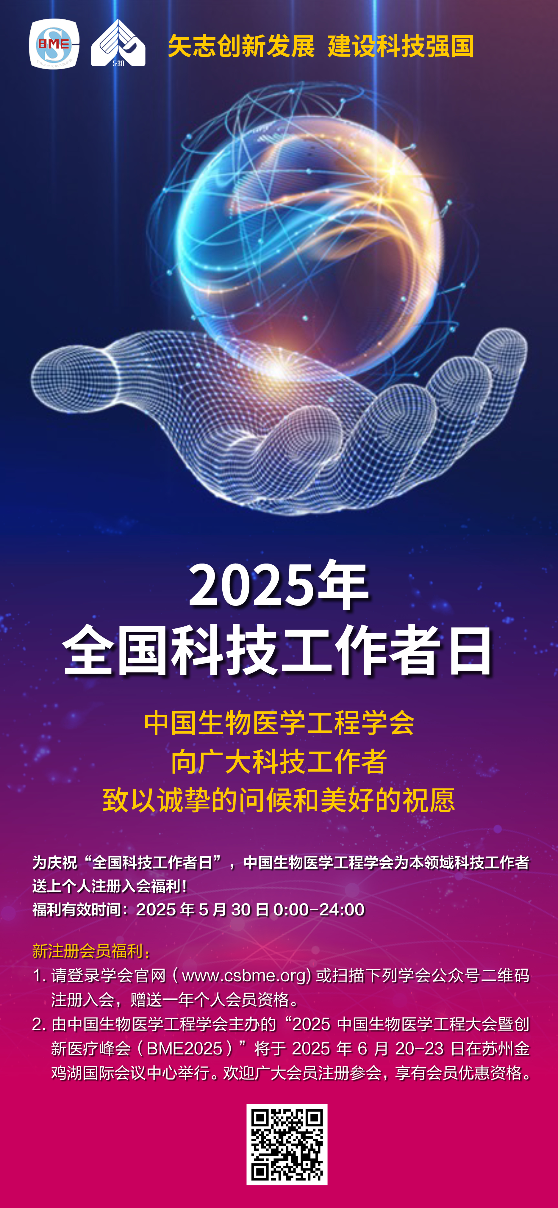 为庆祝“全国科技工作者日”,中国生物医学工程学会为本领域科技工作者送上个人注册入会福利!